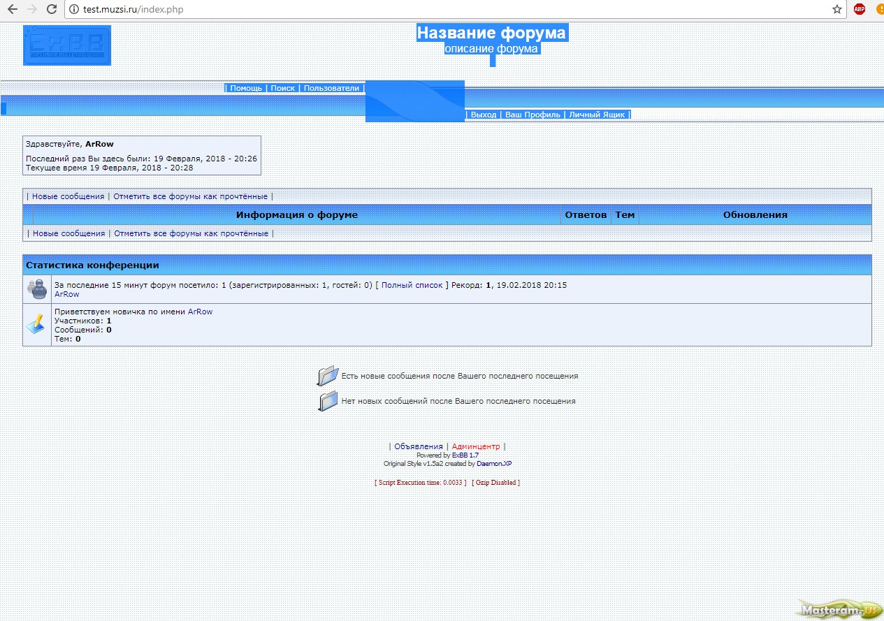 Məlumat: Təsvir:Ən yaxşı PHP forumlarından biri. Geniş çeşidli xüsusiyyətlərə malik çox güclü bir forum. Xüsusiyyətlər və keyfiyyət baxımından bu forum Phorum, Yabb, IkonBoard və XMB kimi nəhənglərlə eyni səviyyədədir. Skript MySQL istifadə etmir; verilənlər bazası kimi sadə bir fayldan istifadə edir. Bu skript kiçik forumlar üçün uyğundur.