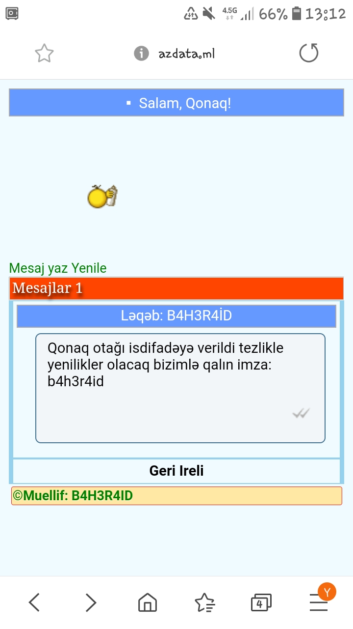 Salam! Saytımız tam istifadənizdədir. İstədiyiniz scripti yazaraq bildirə bilərsiniz.