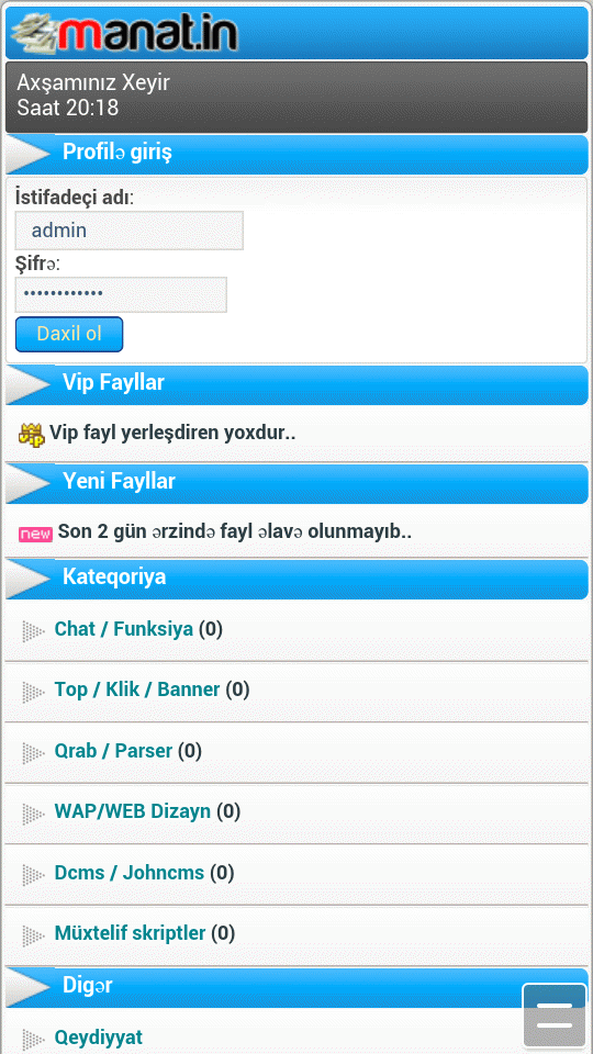 salam zehmet olmasa chat scripti gelsin saytiniz superdi paylasimlarin davami gelsin