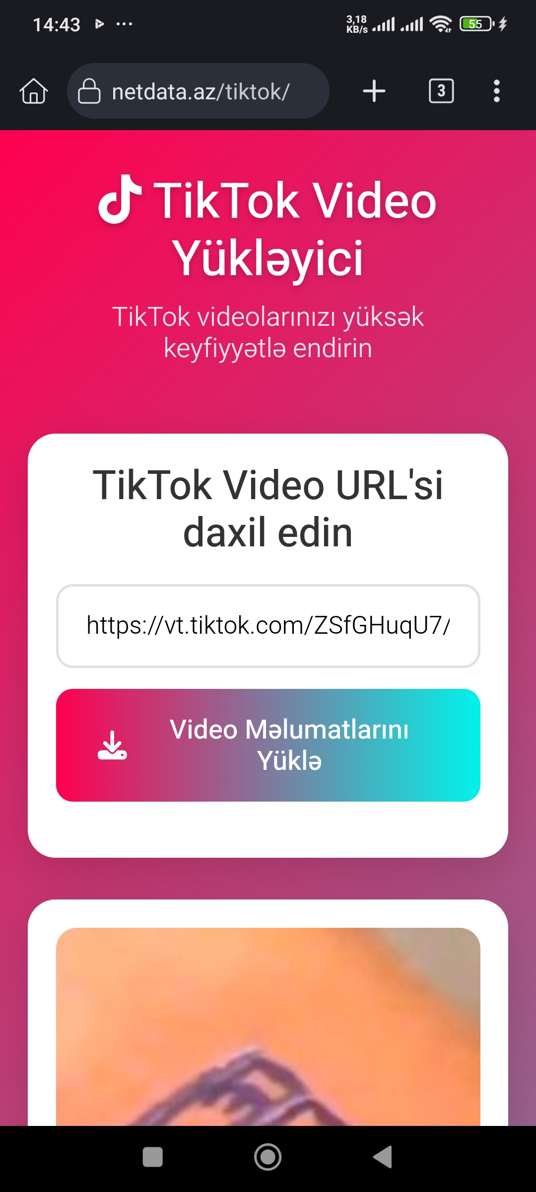 Məlumat: Tiktokdan video yuklemek ucun script qurulmasi cox sadedi